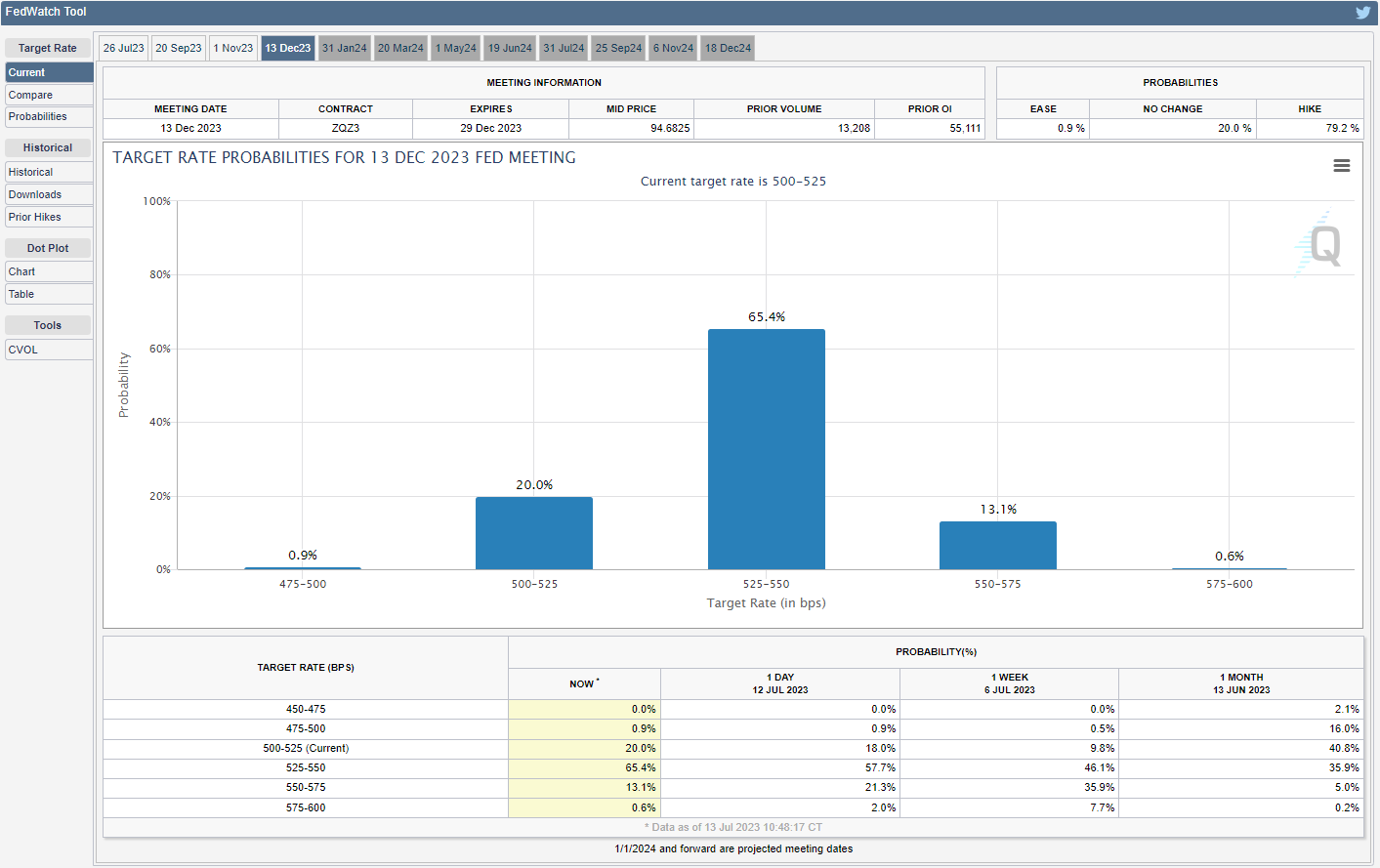 然而,CME FedWatch Tool显示市场对美联储政策潜在变化的猜测越来越多, 12月基准利率达到5.25%5.50%的可能性超过80%,而美元可能在626FOMC决议之前陷入不利局面,因为央行看来已接近加息周期的尾声。