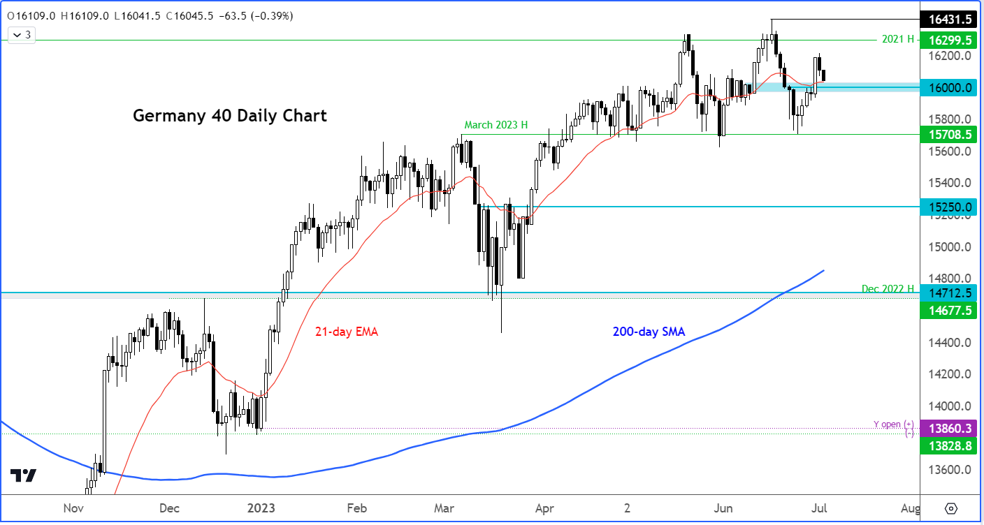 尽管整个欧元区的经济存在不确定性,但德国指数今年表现良好,在6月中旬创下历史新高。但从那以后,波动加剧,先是遭遇大幅抛售,随后又强劲反弹,然后在本周初再次下跌。总而言之,几乎没有技术证据表明看涨趋势已经结束。因此,我们将分析支撑位和阻力位。其中一个支撑位在16000附近(上下浮动20点),此处是周五突破前的起涨点。曾经作为阻力位的该区域可能会变成支撑位并引发另一波买盘。只有指数收盘价低于这个点位,我们才会接受看跌的观点。