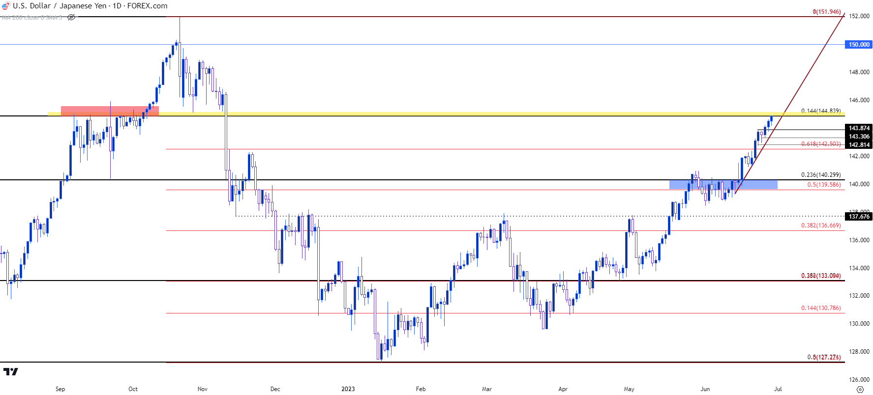 套利交易一直伴随着美元/日元再次创下2023年新高并且逼近图表上的关键点位,该点位在去年的价格走势中发挥了重要作用。